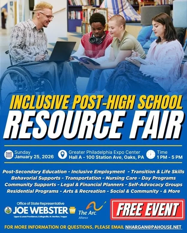 Come visit us at the Inclusive Post-High School Resource Fair on January 28, 2026 from 1-5 at the Greater Philadelphia Expo Center in Oaks, PA! Click on link below for more information: